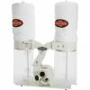 A powerful dust collector from Shop Fox®! This unit features an extra heavy-duty 12″ steel impeller and a 1-1/2 HP motor that runs on 110V. For wood dust only. Models manufactured after June 2015 come with a 2.5 micron felt upper filtration and a plastic (PE) lower collection bag. The upper 2.5 micron bag (D4572) and lower plastic bags (D4573-5pk) can be purchased separately for any collectors that do not include them.