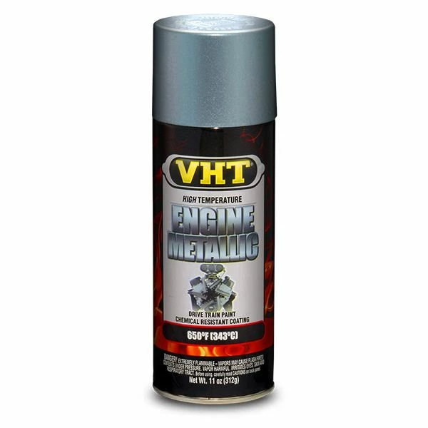 Under hood engine dress-up never looked this good, or stood up to high-heat temperatures like VHT Engine Metallicβ’ Paint. Formulated for high temperature and high-performance applications, VHT Engine Metallicβ’ Paint creates a cool sparkling metallic finish and withstands intermittent temperatures of up to 650Β°F (343Β°C). A unique formulation of urethane and ceramic resins produces a tough and long-lasting finish for engines, engine accessories, or any other surface that requires a durable, heat- and chemical-resistant finish.