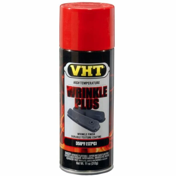 VHT Wrinkle Plusβ’ combines strong colors with a deep rich texture for a custom look. It is temperature resistant to 350Β°F (177Β°C) and is ideal for adding a touch of personal styling to almost any metal surface. VHT Wrinkle Plusβ’ resists color fading, grease, degreasers and severe weather conditions. This tough, durable finish is extremely resistant to rust, corrosion, chipping and cracking.